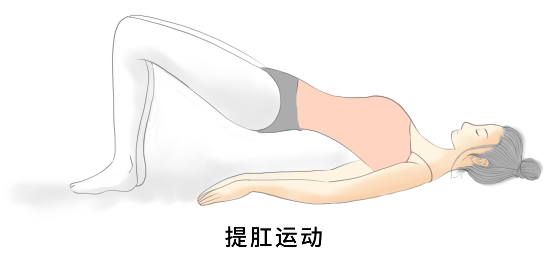 也可以仰卧床上,双腿屈膝微开7~8厘米。吸气时,抬高臀部,收缩盆底肌,保持5秒左右,此动作类似于排尿时突然有意识地停止排尿。